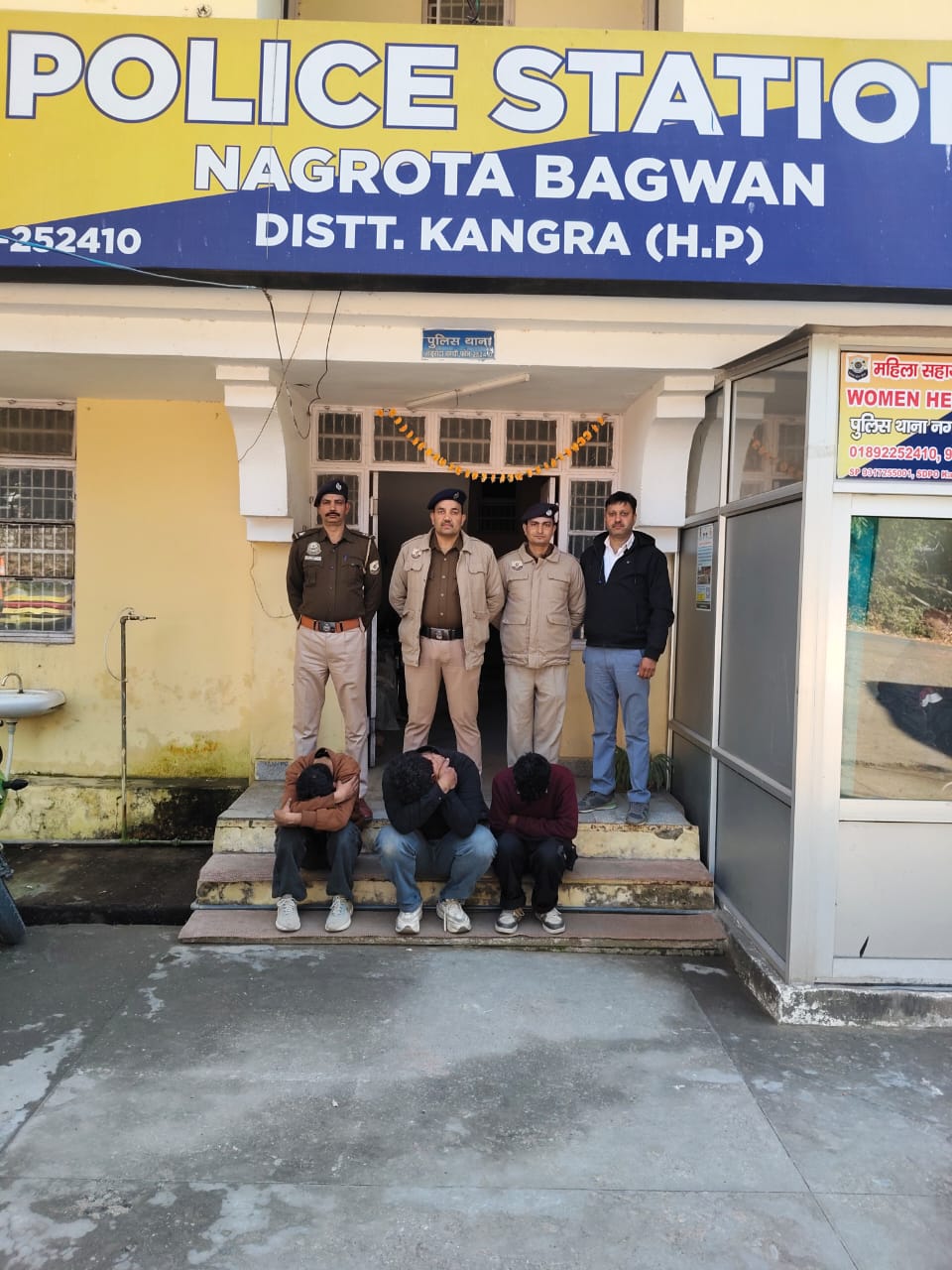 पहले मामले में गुप्त सूचना के आधार पर गाड़ी नम्बर एचपी-39एफ-9772 में बैठे अगम कुमार पुत्र जितेन्द्र कुमार निवासी गांव बीरता डाकघर घुरकड़ी तहसील व जिला कांगड़ा उम्र 23 साल, अभिषेक पठानिया उर्फ अभी पुत्र संजय कुमार निवासी गांव भडभाल डाकघर मटौर तहसील व जिला कांगड़ा उम्र 25 साल तथा अजय चौधरी उर्फ हनी पुत्र अन्गद राम निवासी गांव व डाकघर पासु तहसील धर्मशाला जिला कांगड़ा उम्र 29 साल को 7.11 ग्राम चिट्टा सहित गिरफ्तार किया है.