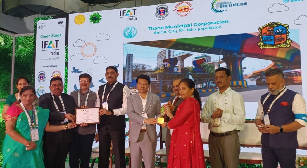 मुंबई ,15 अक्टूबर (Udaipur Kiran News) .ठाणे नगर निगम क्षेत्र में अच्छी वायु गुणवत्ता सुनिश्चित करने के लिए राष्ट्रीय स्वच्छ वायु परियोजना के अंतर्गत नगर निगम द्वारा किए जा रहे प्रयासों को ‘iFAT इंडिया 2025’ कार्यक्रम में ‘हरित सफलता की कहानी’ पुरस्कार से सम्मानित किया गया. ठाणे नगर निगम को ‘वायु’ अवधारणा पर दस लाख से अधिक जनसंख्या वाली श्रेणी में सम्मानित किया गया है.